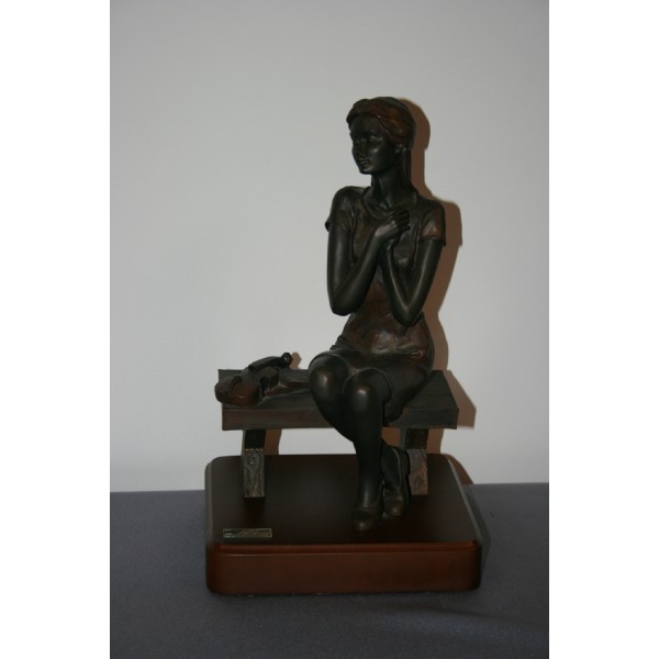 Figura que escenifica a una mujer junto a un violin sentada en un banco