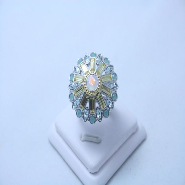 Anillo SWAROVSKI con inspiración vintage presenta un romántico motivo floral de cristal en tonos pastel iridiscentes.Chapado en rodio, con delicados detalles chapados en oro.