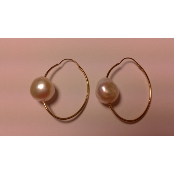Pendientes en forma de aro ovalado realizados en oro de 1ª ley 750 mls.con 2 perlas cultivadas.