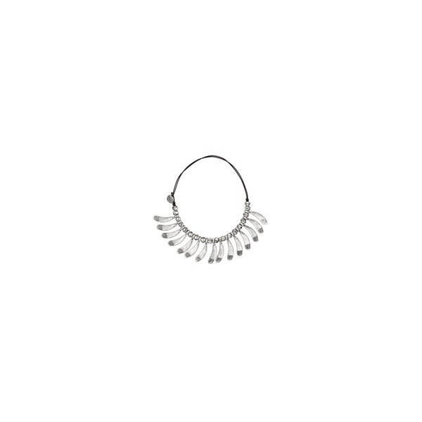 Collar de mujer de cuero con alas de libélulas y cuentas bañadas en plata.